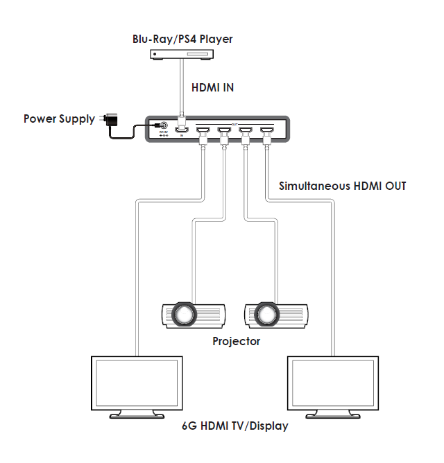 - กระจายสัญญาณ HDMI เข้า 1 ออก 4 พร้อมกัน